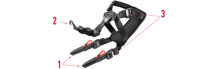 - MASA-systeem (Micro-slip Absorption Safety Adjustment): gepatenteerd systeem dat voorkomt dat de riemen wegglijden of losraken, zelfs bij een botsing.