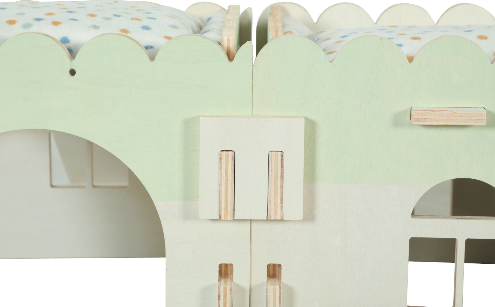 Deze twee huisjes met intelligent design kunnen aan elkaar gekoppeld worden om een grotere, modulaire leefruimte te creëren, ideaal om uw kleine pluizenbol een warme en uitbreidbare cocon te bieden.