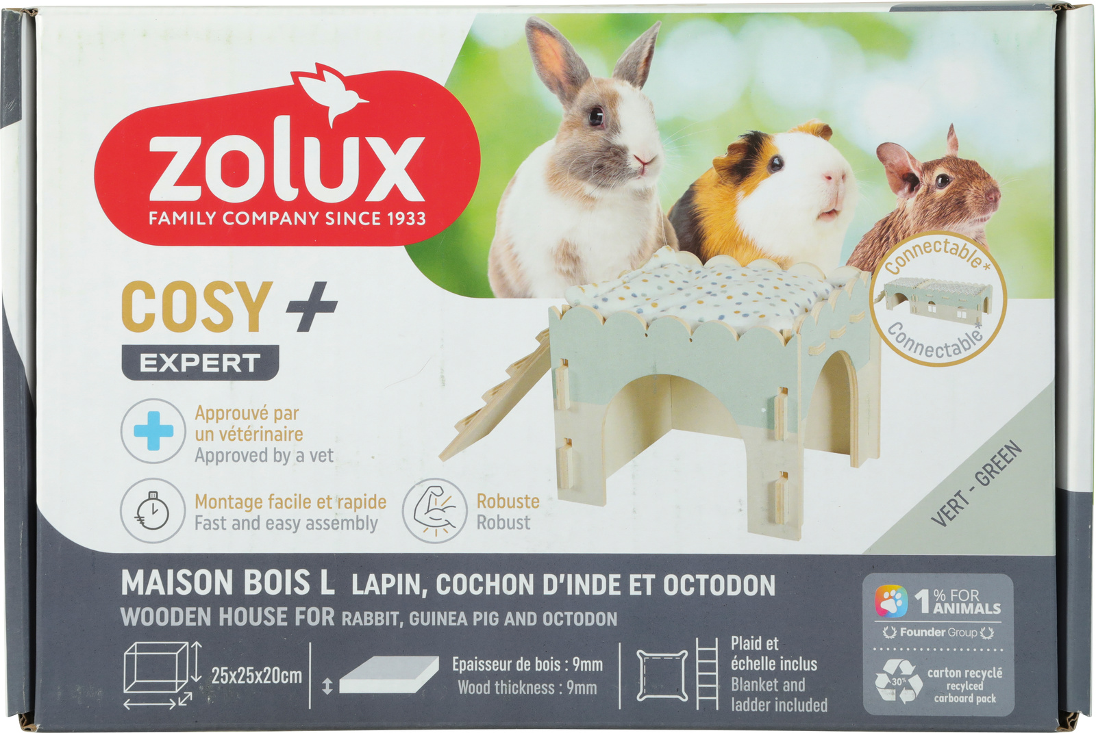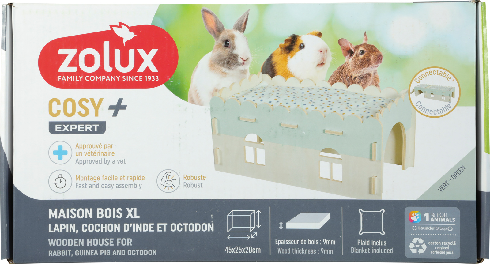 Tot slot beschermt de Neolife antislipmat van microvezel de vloer onder het houten huisje of de binnenkant van het Neopark-hok. Alles wat je nodig hebt voor comfortabele dutjes!