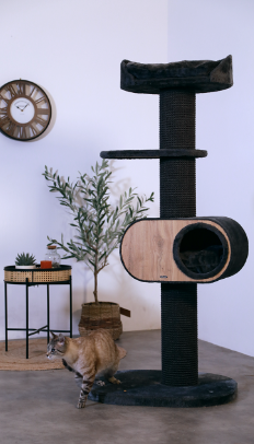 Deze habitats zijn beschikbaar in drie modellen en twee kleuren en bieden rustruimtes, speelplekken en krabplekken aan je katten. Ze zijn vervaardigd in Europa met een structuur die voor 100% is vervaardigd van FSC-gecertificeerde hout. Ze zijn groot, doch zeer stabiel. Hierdoor zijn ze ook perfect voor grote katten!